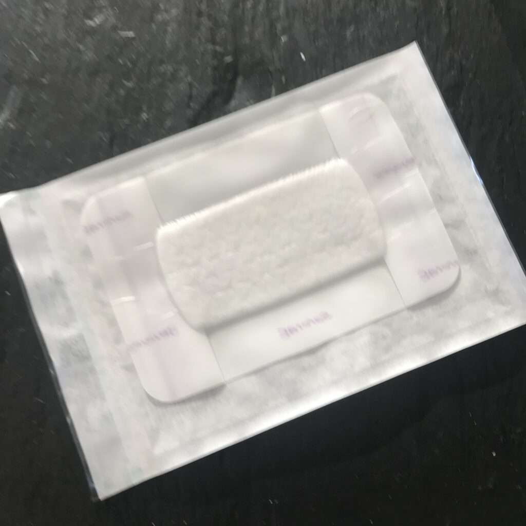 Les instructions pour le retour à domicile étaient des plus simples et minimalistes. Jusqu’à 8 comprimés de Paracetamol par jour (recommandés à l’achat avant l’opération et à payer soi-même). En cas de douleur intense, 3 comprimés (fournis) contenant de la morphine, pour trois jours et à rapporter à la pharmacie si inutilisés… UN SEUL pansement étanche de rechange , que je changerai moi-même après 7 jours!… et c’est tout!… Pas de soins, pas de rendez vous avec le chirurgien à prévoir. Un numéro de téléphone si questions, et les urgences si un problème se présente. Je suis resté circonspect.